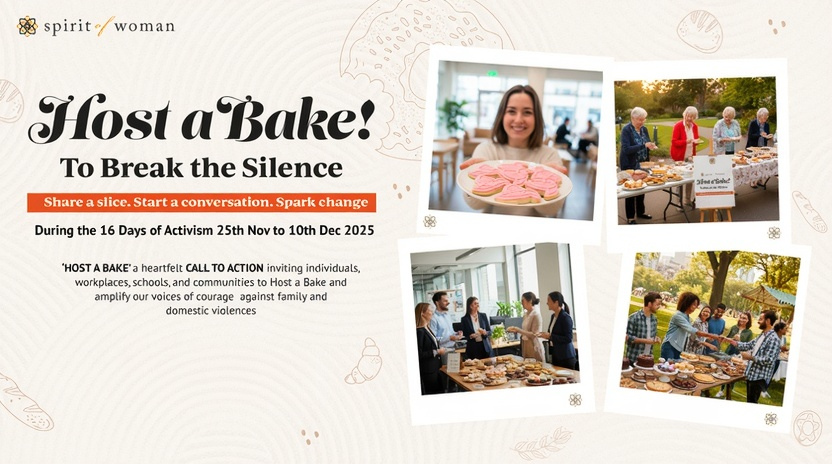 At Spirit of Woman, our vision is to create a world free from family and domestic violence through the power of art. And baking is a form of art — that makes people connect, unite, and build bonds that radiate ripples of courage through stories shared!